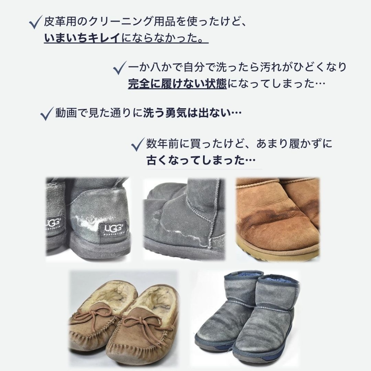 ムートンブーツのクリーニング。
