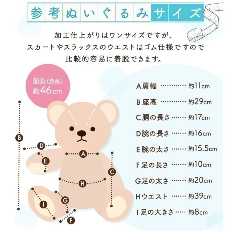 ・ お持ちのぬいぐるみに合わせてサイズを調整することはできません。必ずサイズを事前にご確認ください。