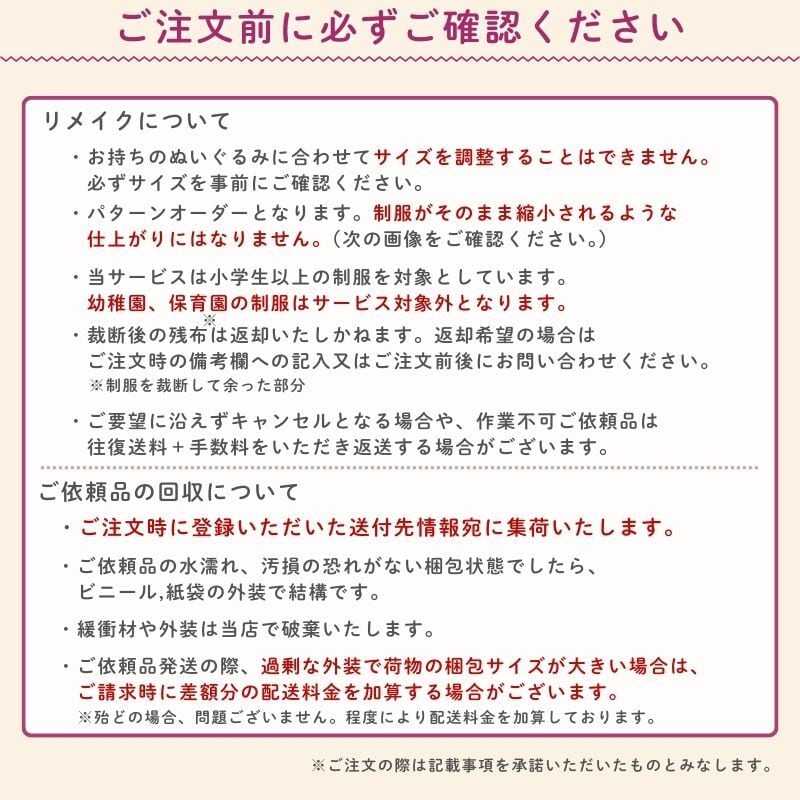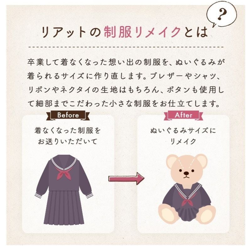 往復 送料無料 制服リメイク「おもいで制服 ぬいぐるみサイズ」