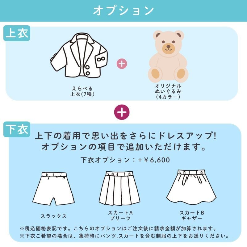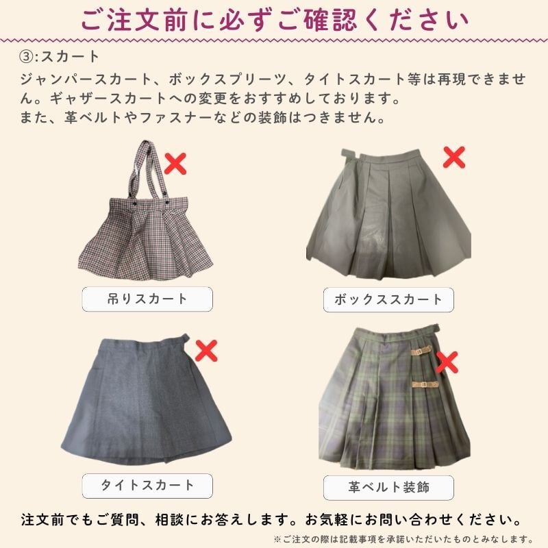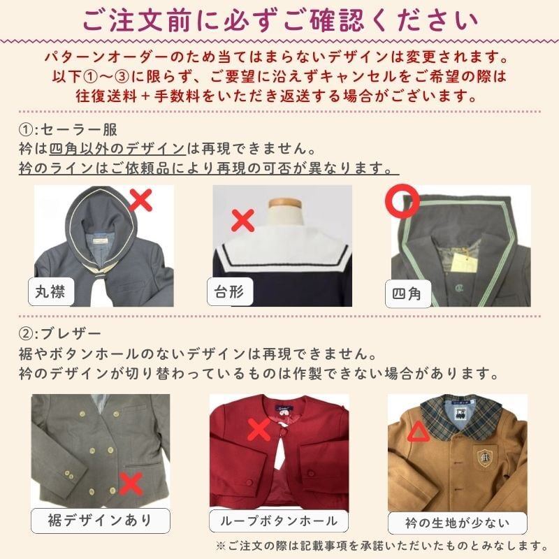 ・ ワンピース、ジャンバースカートなど、メニューにないデザインは作製できません。