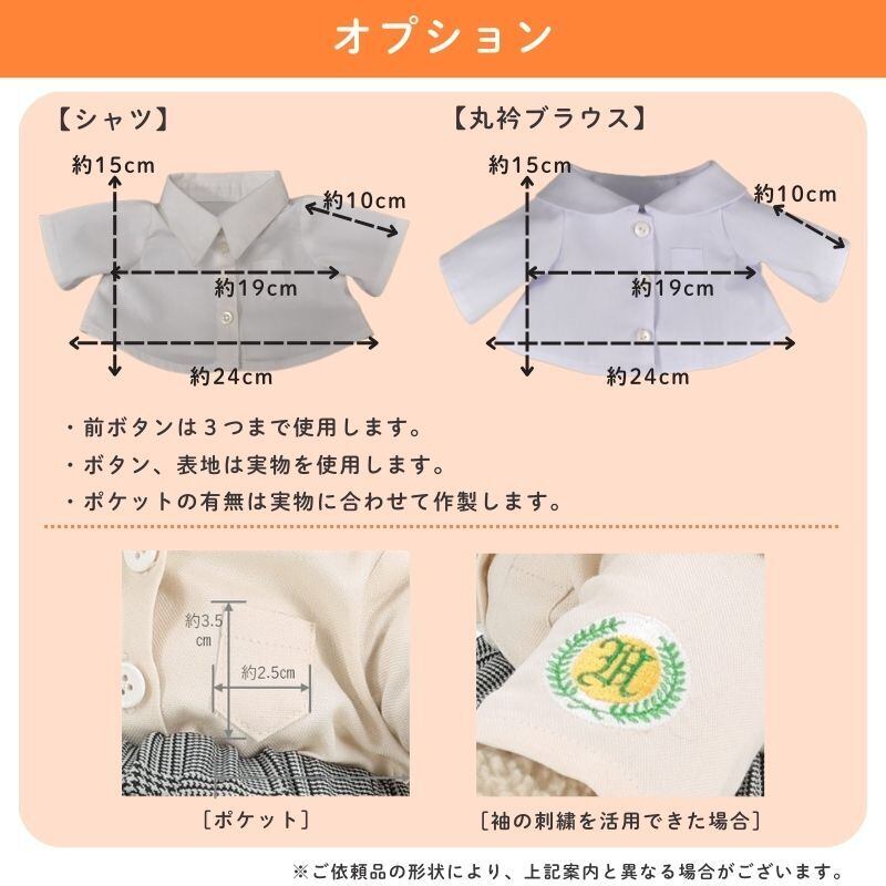 ・ お持ちのぬいぐるみに合わせてサイズを調整することはできません。必ずサイズを事前にご確認ください。