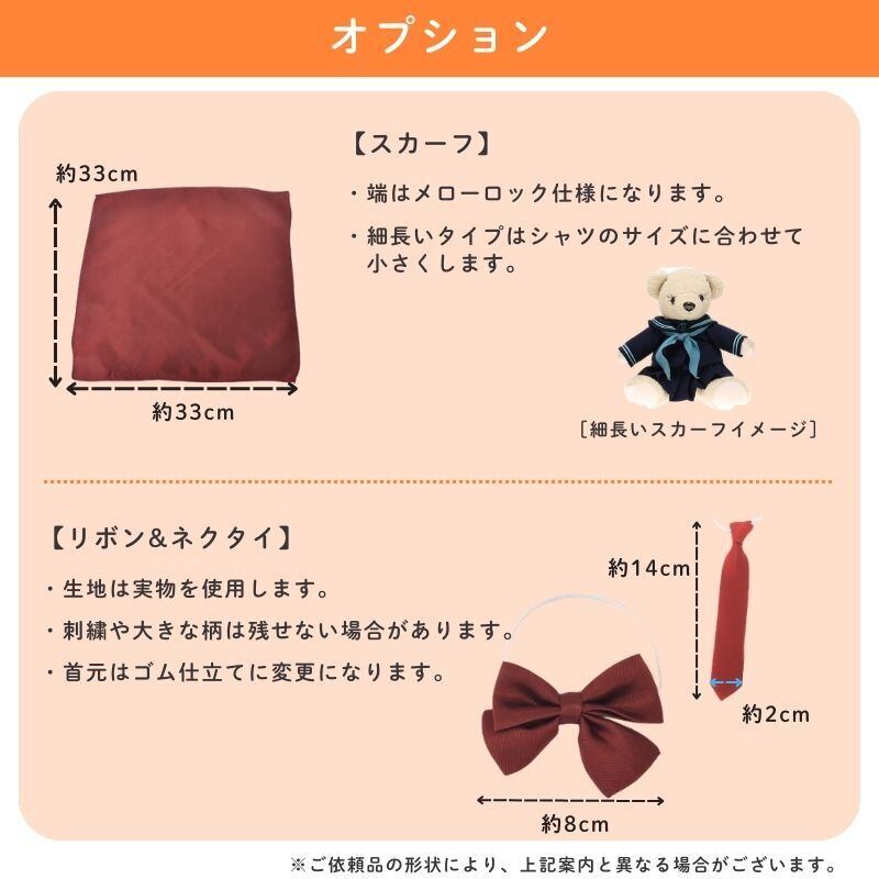 ・ お持ちのぬいぐるみに合わせてサイズを調整することはできません。必ずサイズを事前にご確認ください。